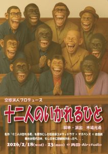 所属者舞台出演情報!! エアースタジオ 舞台【十二人のいかれるひと】 2/18(水)〜2/20(月) @A -root AKASAKA A班/佐々木 真心・優[…]
